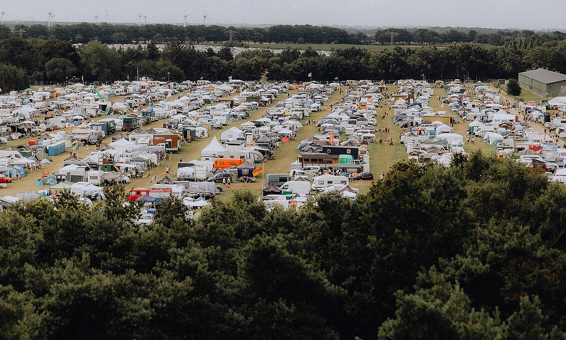 The campground is open from Thursday noon to Monday noon. For visitors with an early arrival ticket, the respective camping areas already open on Wednesday at 03:00 p.m.