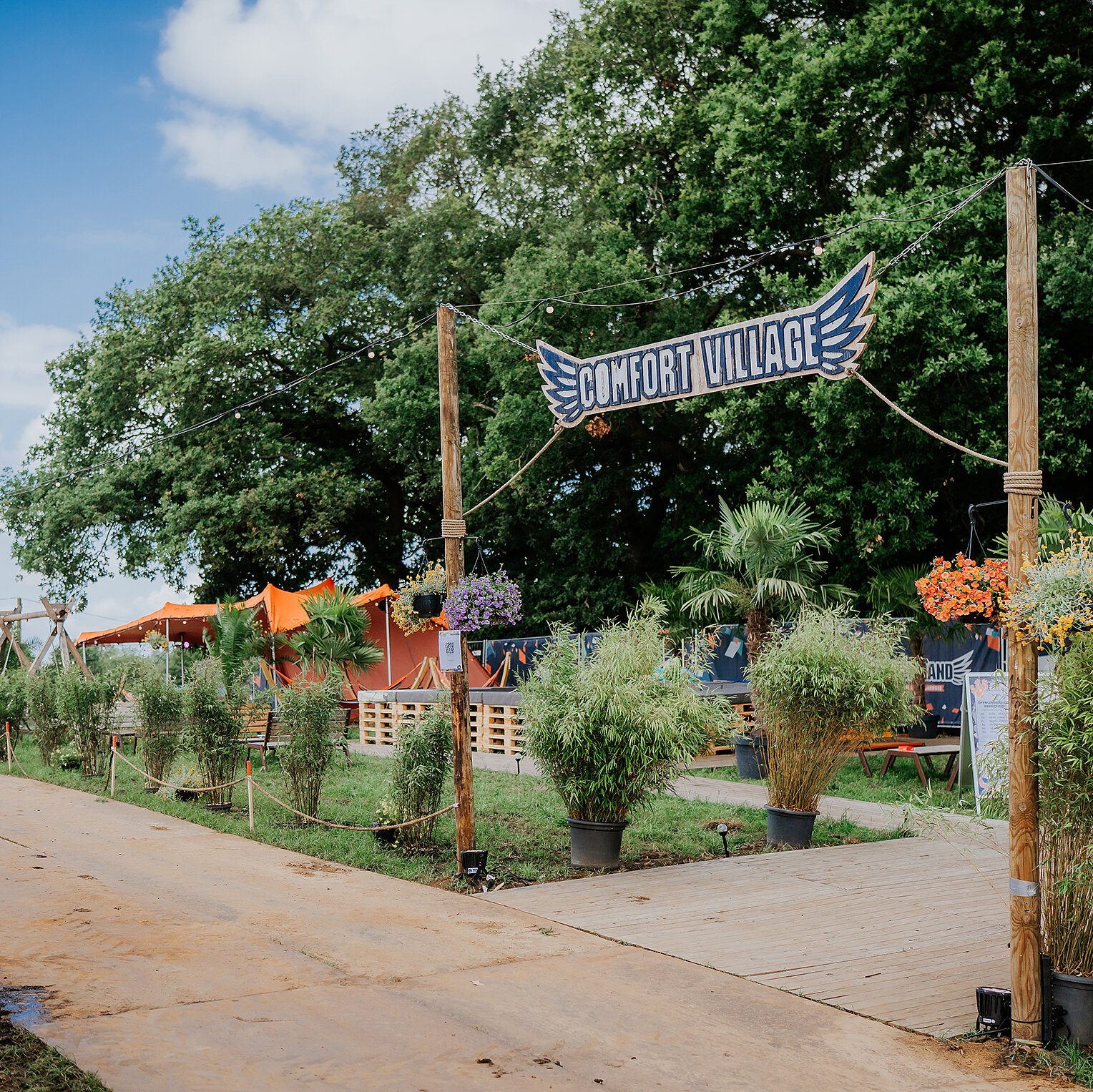 Comfort Village: Comfort camping with electricity, contact persons, kiosk, and much more. Camping ticket per person + additional Comfort Village product per group (e.g., allotment garden for up to 10 people) required.