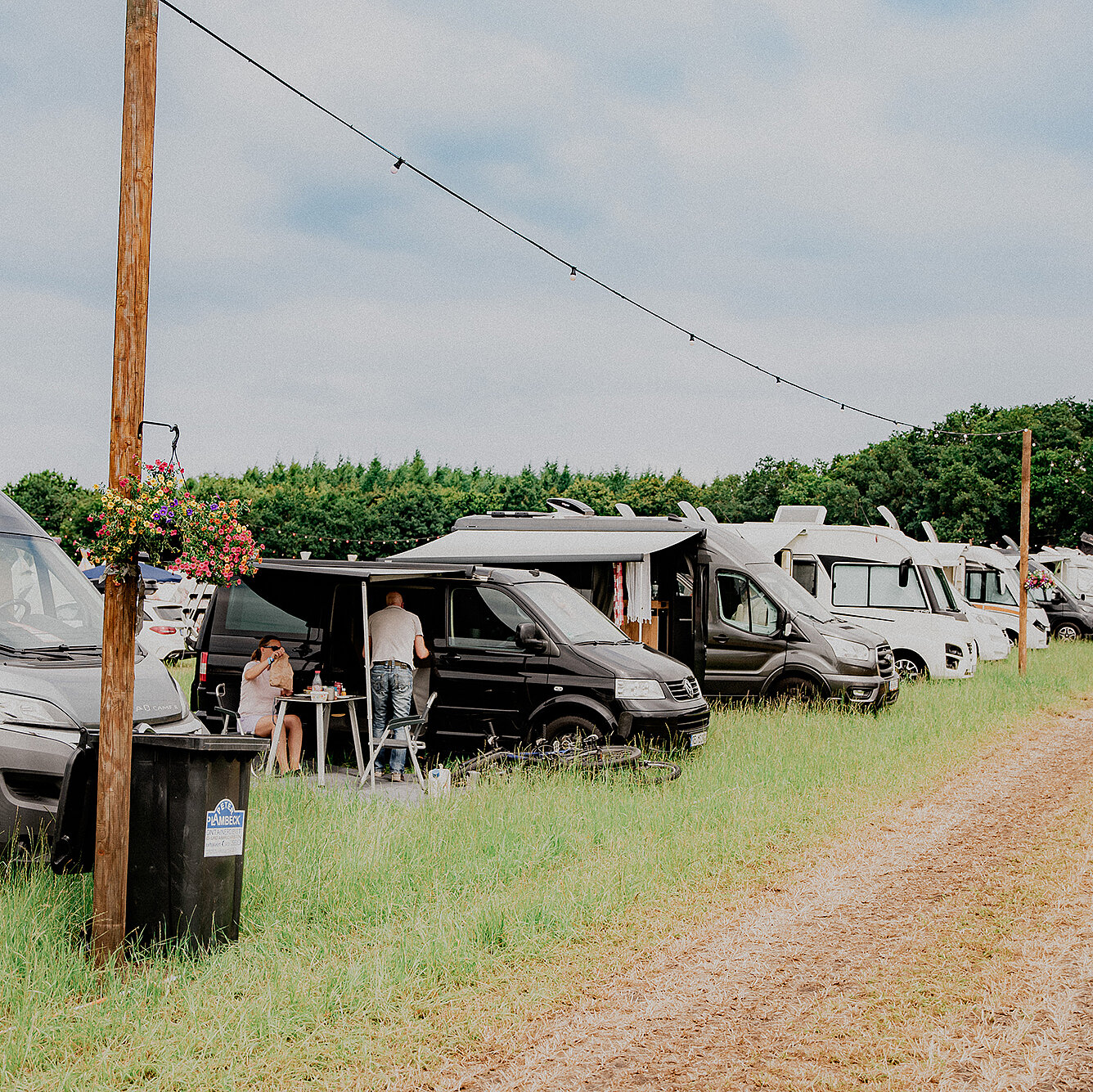 Are you a group of friends who want to camp together and secure your spot in advance, without any stress on arrival? Then your own plot is just the thing for you! When you book a plot, you get a reserved area near the infield that is exclusively available to you—either for up to 5 people (50 m²) or up to 10 people (100 m²). This means you can arrive when it suits you, have enough space for your tents, and don't have to worry about anything once you're there.
